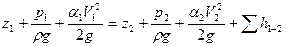 Уравнение Бернулли является основным уравнением гидродинамики. Для двух сечений потока 1-1 и 2-2 реальной жидкости при установившемся движении уравнение Бернулли имеет вид
