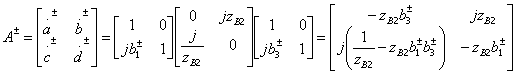 Классические матрицы передачи четырехполюсников симметричного и антисимметричного возбуждения определяются путем вычисления произведения трех матриц передачи, две из которых относятся к шунтирующим проводимостям