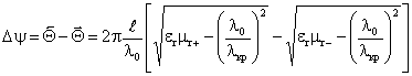 Для расчета дифференциального фазового сдвига Dy предположим, что длина отрезка волновода с ферритом равна l и что при распространении волны слева направо в феррите возбуждается волна круговой поляризации левого вращения, при которой участок волновода с ферритом будет иметь некоторую эффективную магнитную проницаемость mr- и электрическую длину