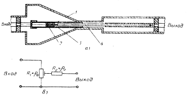 Если в ослабителях используются стержневые сопротивления типа МОУ или УНУ, то, чтобы эти сопротивления не давали отражений, наружные проводники должны соответствующим образом плавно изменяться.