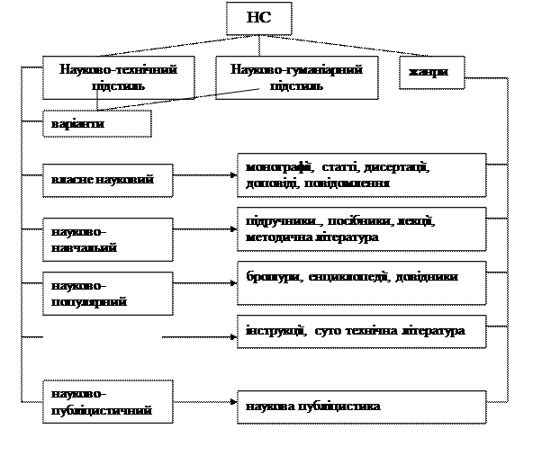 НС має ряд загальних рис, тобто говорять про специфіку стилю в цілому. Разом з цим цілком природно, що тексти з фізики, математики відрізняються від текстів з філології, історії, філософії – характером викладу.