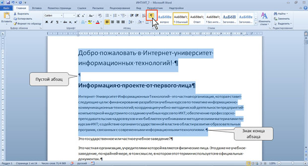 Word 2010 имеет многочисленные инструменты для оформления абзацев. Большая часть их сосредоточена в группе Абзац вкладки Главная. Для установки отдельных параметров можно также воспользоваться мини-панелью инструментов.