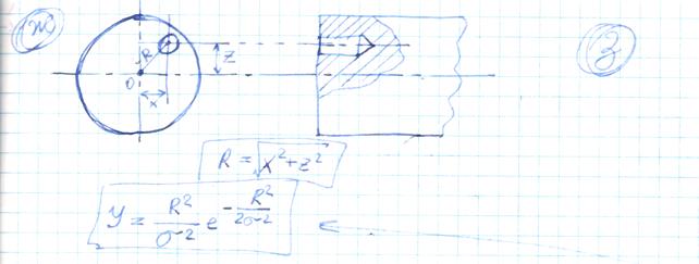Анализ уравнения показывает, что Y = 0 при R = 0. При этом начало координат всегда совпадает с началом кривой распределения.