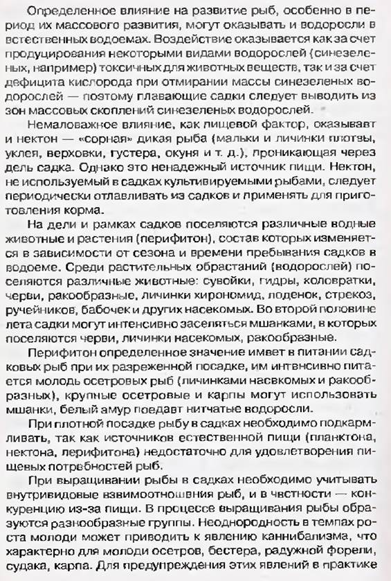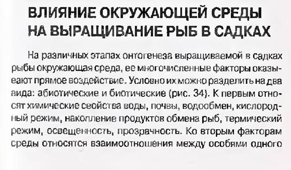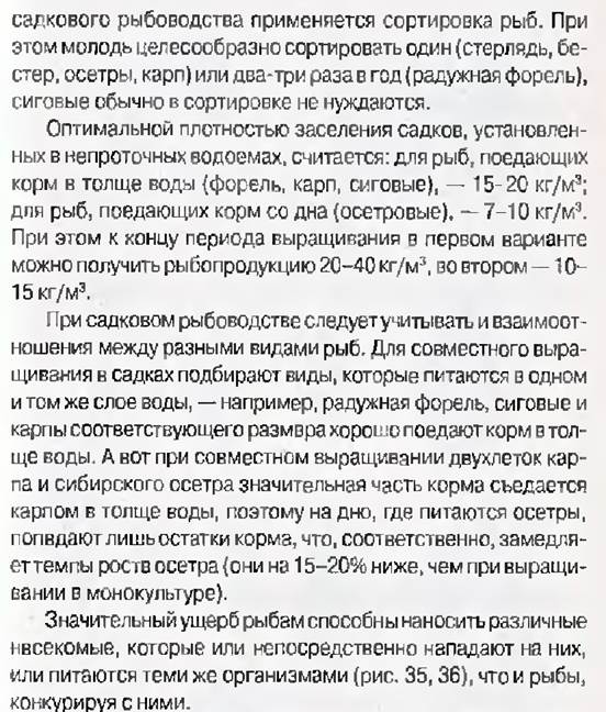 В бассейнах, сетчатых садках и небольших проточных прудах как основных рыбоводных емкостях индустриального рыбоводства высокая плотность посадки рыб и высокий выход рыбопродукции — основные экономические условия производства. Вместе с тем увеличение плотности посадки имеет предел, определяемый качеством водной среды и биологией вида.