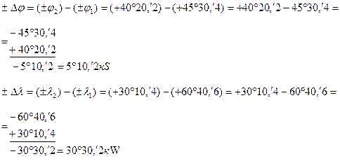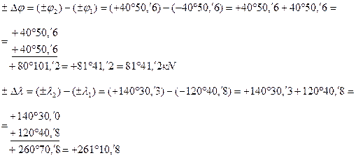 ВЫЧИСЛЕНИЕ РАЗНОСТИ ШИРОТ И РАЗНОСТИ ДОЛГОТ ДВУХ ТОЧЕК