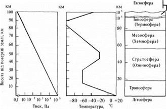 Зміна тиску, температури повітря в атмосфері залежно від відстані від поверхні Землі