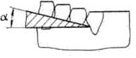 Кут α, який створений опорною та ріжучою гранями є кутом загострення леза. Клин (рис.7.1, а) є одностороннім, якщо має робочу А і опорну Б грані. Клин (рис.7.1, б) є двостороннім, якщо не має опорної грані, так, як обидві його грані є робочими. Для двостороннього симетричного клину, кут загострення рівний подвійному куту загострення одностороннього клину.