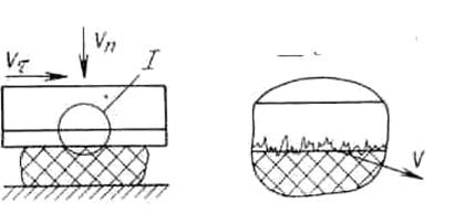 Для здійснення процесу різання необхідне відносне переміщення робочого інструмента та продукту. В загальному випадку швидкість його переміщення направлена під деяким кутом φ до ріжучої кромки леза, та її можна розташувати по двом напрямкам: за нормаллю до ріжучої кромки та вздовж неї (рис.7.3).