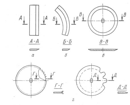 а – прямолінійні; б – криволінійні; в, г – дискові