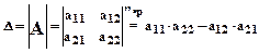 Определителем второго порядка будем называть число(D),полученное из квадратной матрицы второго порядка по формуле: