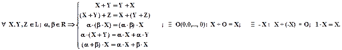 Пространство L называют линейным, если сложение элементов и умножение их на скаляр дает элемент того же пространства и при этом обладают свойствами: