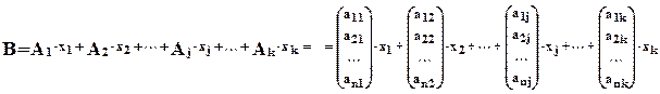 и вещественные числа х1, х2, ... ,хj, ... хk, которые будем называть коэффициентами.
