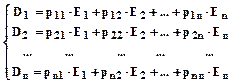 (*) Пусть в n-мерном векторном пространстве задан еще один базис: D1,D2, ...,Dnи связь между старым и новым базисом задана системой векторных уравнений: