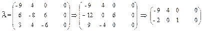 Получили однородную систему двух линейных уравнений с тремя неизвестными. Однородная система всегда разрешима. Количество неизвестных равно 3, а ранг расширенной матрицы и матрицы системы равен 2, следовательно, система имеет бесчисленное множество решений, зависящих от оного параметра ( 3-2=1 ) . Пусть x1 =4t, тогда x2 =9t, x3 = 8t, где t - параметр. Это означает, что при данной структурной матрице торговля будет сбалансированной только при условии, что отношение национальных доходов этих стран будет равно 4 : 9 : 8 .