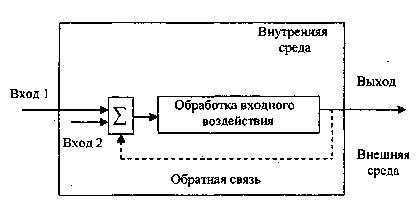 Входное воздействие складывается из воздействий внешней среды (вход 1) и собственных внутренних воздействий (вход 2). В любой организации в виде «входов» выступают трудовые, материальные и финансовые ресурсы (вход 1) и так называемые «неосязаемые» ресурсы, которые могут быть представлены в виде управленческих решений, особых знаний или умений, общественной поддержки программ и политики предприятия (вход 2). Затем эти ресурсы объединяются (суммируются (Σ)), и происходит обработка входного воздействия.