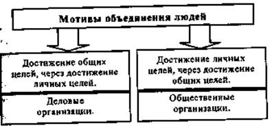 Мотивы, по которым люди объединяются в организации, можно условно разделить на две группы (типа) (см. рис. 8):