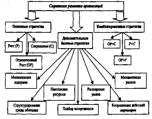Существует достаточно большое количество дополнительных базовых стратегий развития организации. К ним относятся стратегии минимизации издержек, сокращения рисков, накопления ресурсов, расширения рынка, структурирования среды обитания, выбора ассортимента, координации действий партнеров (см. рис. 10).