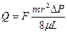 Уравнение Пуайзеля описывает объемную скорость течения жидкости через такую пористую среду: