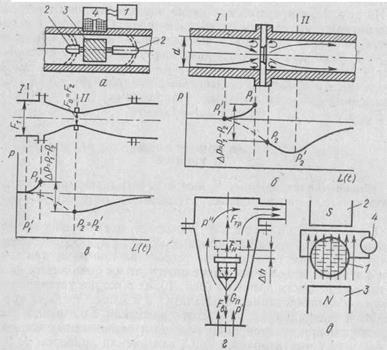 Рис. 19. Расходомеры: тахометрические (а) переменного перепада давления