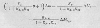 В уравнениях динамики электродвигателей постоянного тока для малых отклонений переменных за выходную величину принимаем изменение угловой скорости двигателя