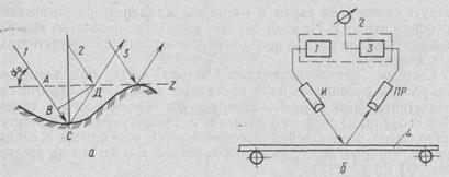 а — рассеяние волн на неровной поверхности; б — схема измерения