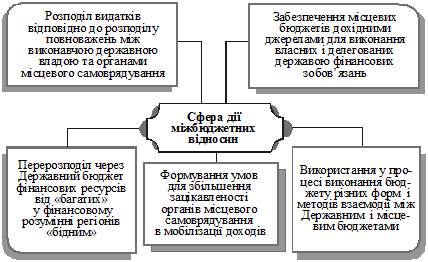 Саме ця взаємозалежність, що виникає між бюджетами різного рівня, а також органами влади одного рівня з приводу перерозподілу і використання фінансових ресурсів, відображає сферу дії міжбюджетних відносин. Оскільки міжбюджетні відносини відображають визначену взаємозалежність ланок бюджетної системи держави, можна сформулювати таке їх визначення: «Міжбюджетні відносини в Україні — це спеціалізована форма взаємозв’язків і взаємозалежностей між місцевими бюджетами і Державним бюджетом України, а також між окремими рівнями системи місцевих бюджетів». У свою чергу, об’єктом міжбюджетних відносин виступають фінансові ресурси, що розподіляються між бюджетами різних рівнів для усунення диспропорцій в економічному розвитку регіонів. Таким чином, міжбюджетні відносини об’єктивно зумовлені тим, що, як і будь-які фінансові відносини, виникають через суспільну потребу в перерозподілі бюджетних ресурсів на користь бюджетів, що в меншій мірі забезпечені чи мають у цей час більшу потребу в коштах.