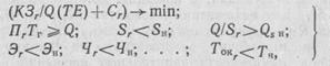 где КЗr — капитальные затраты на r-вариант; Q — программа предприятия; Сr — затраты на выпуск единицы продукции; ТЕ — срок окупаемости капитальных затрат; Тг— годовой фонд рабочего времени; Пr Sr, Q/Sr, Эr, Чr — показатели по r-му варианту: производительность, производственная площадь, съем продукции с единицы производственной площади, энергоемкость, число людей соответственно; SН, Qsh, Эн, Чн — нормативные значения (или реальные характеристики производства): производственная площадь, съем с единицы производственной площади, расход энергии, численность рабочих соответственно; TОКr. — срок окупаемости капитальных затрат по r-му варианту; Тн—нормативный отраслевой срок окупаемости.