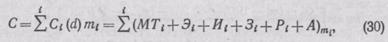 где Сi —затраты, связанные с преобразованием материала в продукцию t-м оператором; затраты: d — функция, определяющая выбор значений i (из каких операторов состоит участок); МТi — на материал на единицу продукции; Эi — на энергию на единицу продукции; Иi — на инструмент и приспособления; Рi — на ре-