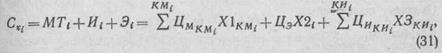 где Х1КМi — расход материала KМi-го вида на i-м операторе (оборудования); X2i — расход энергии на i-м (оборудовании) операторе; Х3КИi. — расход инструмента и приспособлений КИi-го вида на i-м операторе (оборудования); ЦмКМi., Цэ, ЦиКИi.— цены еди-ницы материала КМ-гo вида, энергии, инструмента и приспособлений КИ-го вида (Цэ = 0,015 р/кВт