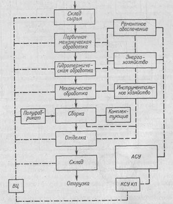 штучные изделия: — — основные связи производственных цехов;-------------------