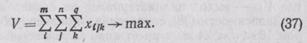 При определении максимума производительности (35) по целевой функции модели (37) следует учитывать действующие ограничения (36) по фонду машинного времени А, по плановым объемам распиливаемого сырья определенных поставов.