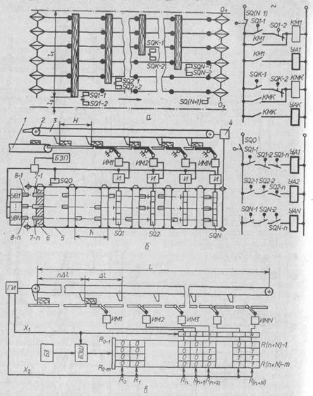Рис. 152. фсемы управления сортировочными конвейерами: