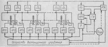 Рис. 175. Блок-схема многоканальной системы контроля и регулирования