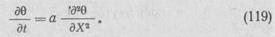 Уравнение (119) есть дифференциальное уравнение теплопроводности для одновременного потока тепла и отражает зависимость между температурой, временем и координатой расположения точки на оси X.
