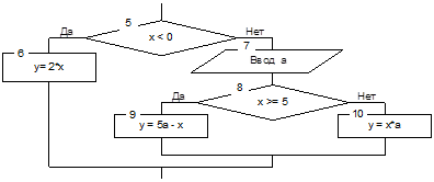 Например, следующие фрагменты графической схемы алгоритма программируются так:
