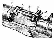 На стволе закреплены основание мушки, газовая камера и колодка прицела (рис. 16). На планке нанесена шкала с делениями от 1 до 10 и буквой П (постоянная установка).