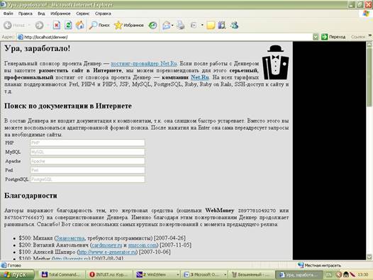 Рис. 1.3. Страница http://localhost после инсталляции комплекса