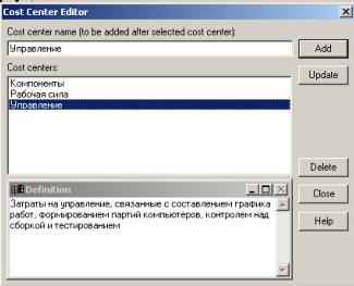 Рис. 8.3. Диалог Cost Center Editor