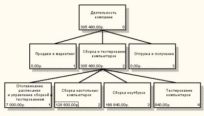 · Объект затрат– причина, по которой работа выполняется, обычно основной выход работы. Стоимость работ есть суммарная стоимость объектов затрат («Сборка и тестирование компьютеров», рис. 8.1);