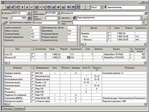 В системе заложены типовые бизнес-процессы, описывающие технологические операции, которые используются в большинстве небольших полиграфических предприятий. Обеспечивается автоматизация управления всеми подразделениями: продаж, маркетинга, допечатной подготовки, печати, финишной обработки, доставки готовой продукции, складов материалов и готовой продукции.