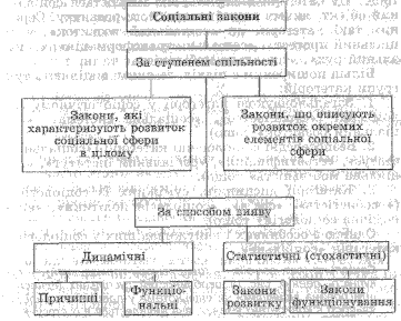 У процесі функціонування спільнот формується безліч різних соціальних зв'язків. Нерідко вони сприймаються як щось тимчасове, випадкове. Та насправді всі вони зумовлені суспільними зв'язками, відносинами, що характеризуються загальністю, необхідністю та повторюваністю. Ці зв'язки називають законами.