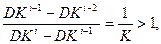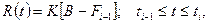где t – временной интервал между обнаружением (i-1)-ой и i-той ошибок. Начальное значение этой функции R(0) = D, и функция риска убывает со скоростью геометрической прогрессии (0<K<1) по ходу процесса обнаружения ошибок. Скорость изменения R(t) пропорциональна инвертированному значению константы K: