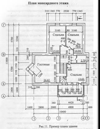 Условные обозначения элементов плана (лестницы, пандусы, заполнение оконных и дверных проемов, открывание дверей, различные отверстия) в соответствии с ГОСТ 21.501-93 приведены в табл. 3. Пример плана – на рис. 11.
