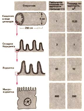 Рис. 29.31. Увеличение поверхности слизистой оболочки за счет особенностей морфологии