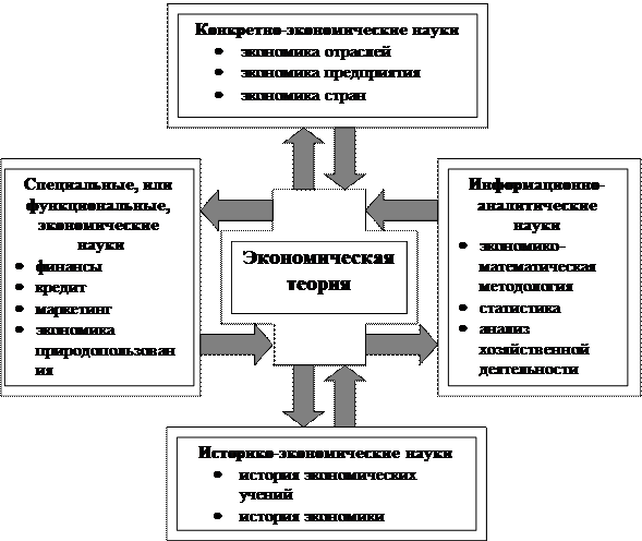 · конкретно-экономические науки, изучающие или отдельные сферы хозяйственной деятельности (экономика отраслей), или отдельные хозяйствующие субъекты (экономика предприятия, регионов, отдельных стран и т.д.);