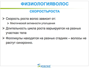 На конечностях продолжительность анагена у женщин 22 дня, 50% волос на конечностях находятся в телогене. У мужчин анаген — 28 дней, телоген до 80 дней (на руках) и 54-100 дней на бедре.