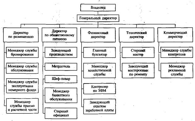 Организационная структура гостиничного предприятия определяется его назначением, вместимостью номерного фонда, спецификой гостей и рядом других факторов.
