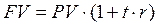 Тоді майбутню вартість (FV) внеску (грошей) з урахуванням простого % можна визначити так: