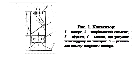 Широко використовуються також конвектори (рис. 1), які віддають тепло за рахунок циркуляції повітря (конвекційний тип). Кімнатне повітря надходить у прилад через нижній отвір, стикаючись із нагрівальною поверхнею (ребриста труба) нагрівається і виходить через верхній отвір. За рахунок руху повітря інтенсивність теплообміну збільшується порівняно з радіаторами на 20%. У конвектор довжиною понад 0,55 м може бути вмонтований зволожувач повітря.