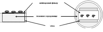 Ці недоліки усуваються при використанні згустку агару. Така техніка була запропонована Спраттом (рис. 3). Метод заснований на одержанні агарового гелю 1 – 4% концентрації, основу якого становлять забуферені сольові розчини або поживні середовища типу 199 з додаванням ембріональної сироватки.